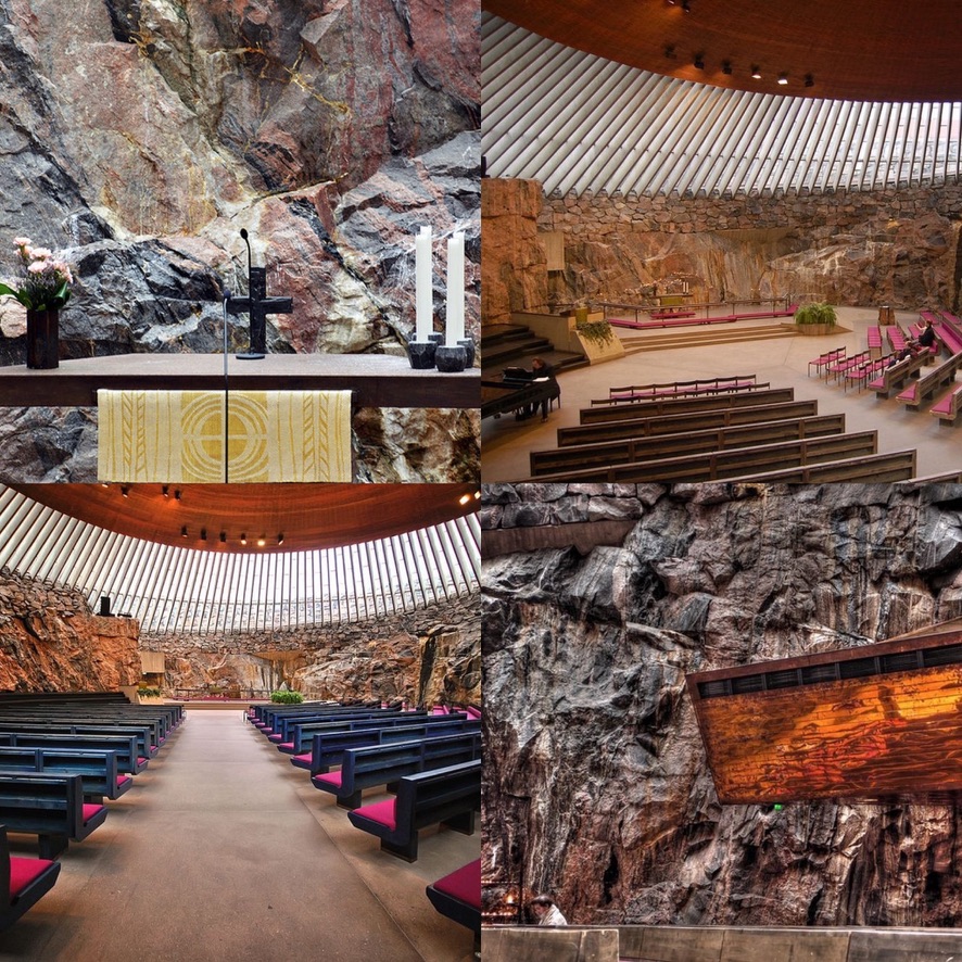 This is a modern architectural Church, which was built in solid rocks. Temppeliaukion Church is located in Helsinki Finland. It was built in 1969 and designed by architect brothers Tuomo and Timo Suomalainen. (ATLASOBSCURA)